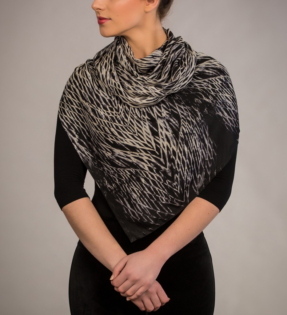 Arashi Shibori Poncho Scarf. 100% Habotai Silk