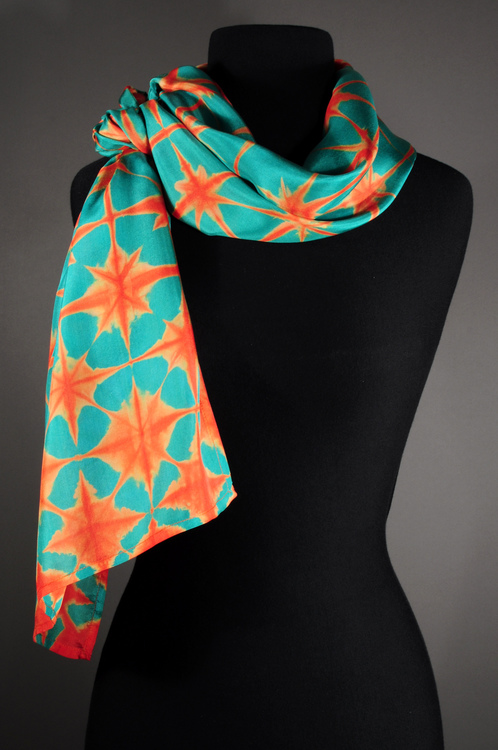 Itajime Shibori Scarf. 100% Habotai Silk